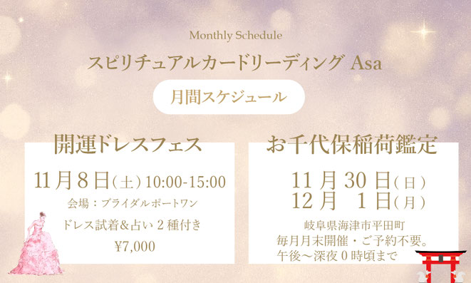岐阜県お千代保稲荷で毎月開催される「月並祭」で対面鑑定を行っています。